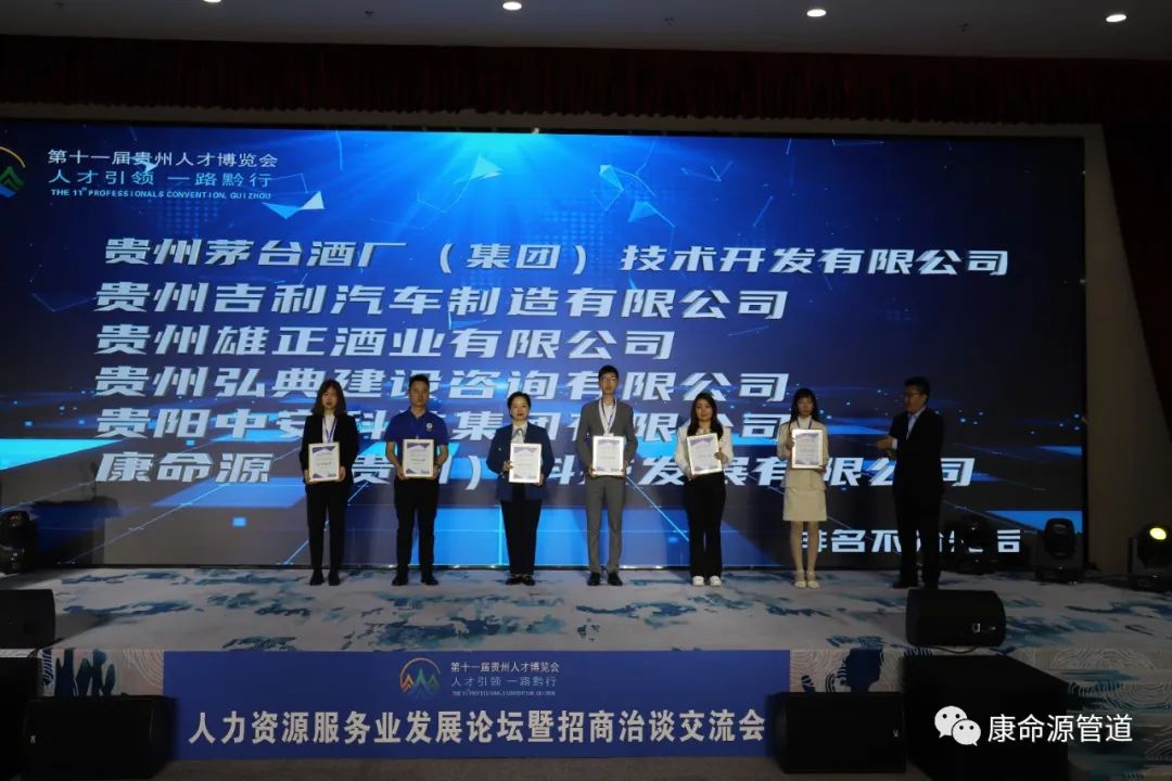 4月23日,在第十一届贵州人才博览会期间,举行了人力资源服务业发展论坛暨招商洽谈交流会,并表彰了2023年度企业人力资源发展优秀品牌及管理优秀案例,康命源(贵州)科技发展有限公司被授予“贵州省2023年度企业人才发展优秀品牌”称号。