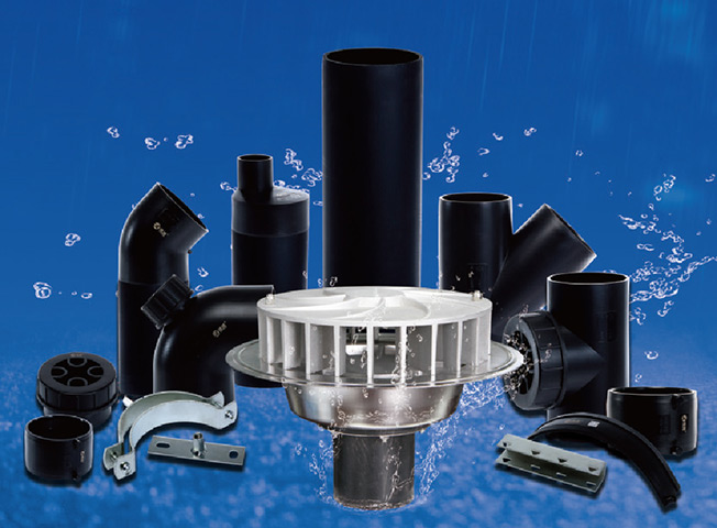 HDPE虹吸式雨水排放系统,即压力流雨水系统,通过设计形成管道负压虹吸作用,由虹吸雨水斗、悬吊管、立管等组成,利用雨水势能形成真空,实现屋面雨水高/效排放。